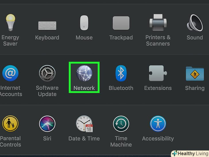 НатиснітьМережа . цей значок у формі глобуса знаходиться у вікні «Системні налаштування».
