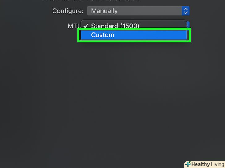 Натисніть " MTU " gt;Довільно . опція "MTU «знаходиться під опцією»Налаштування".