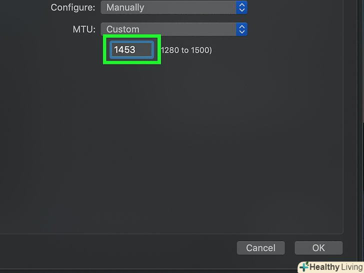 Введіть 1453 в текстовому полі. воно знаходиться під опцією «MTU».
