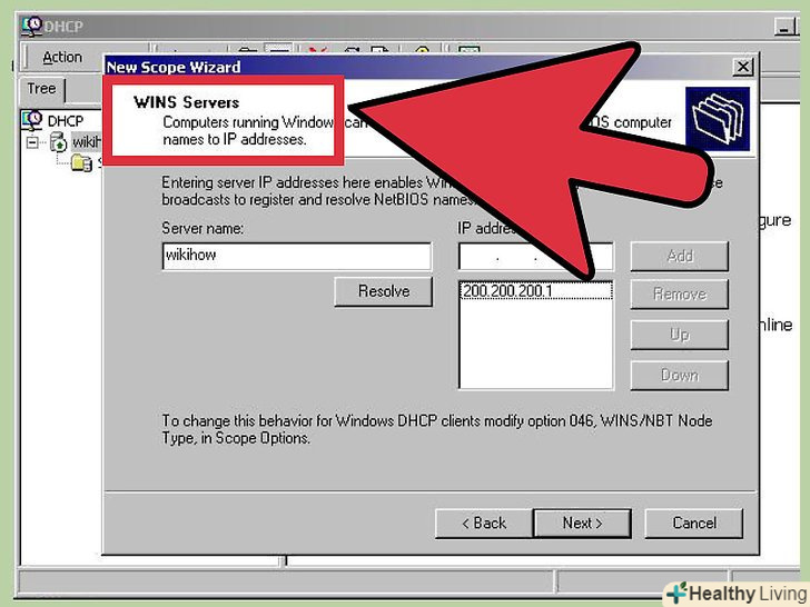 На наступній сторінці вкажіть ім'я сервера WINS і його IP адреса. натисніть Додати, потім далі.