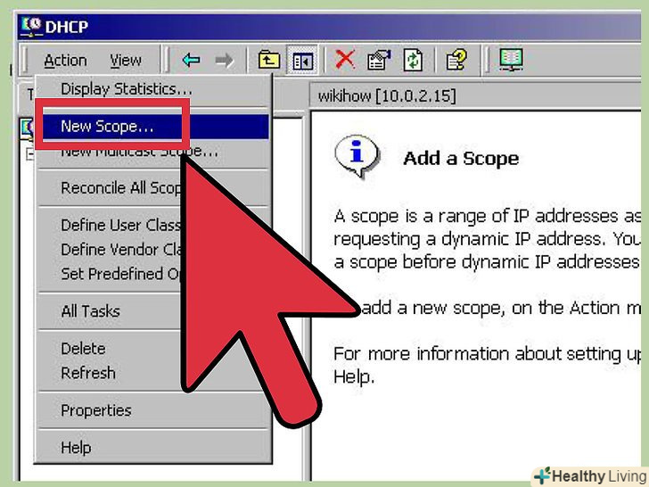 Запустіть DHCP з меню Пуск, Програми, службові, DHCP.