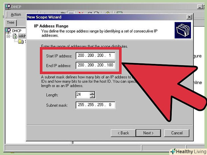 Ми навчимо вас задавати діапазон адрес DHCP. Діапазон адрес-це кілька IP адрес і конфігурацій TCP / IP, які доступні для оренди клієнтам DHCP комп'ютерів. Діапазон повинен бути визначений і активований на DHCP сервері, щоб присвоїти динамічну конфігурацію TCP/IP комп'ютеру клієнта. У діапазоні повинні бути однорідні IP адреси, що знаходяться в одному радіусі.