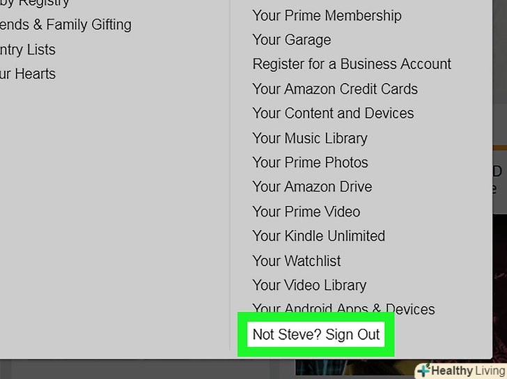 Виберіть " Not [your name]? Sign out "(не [ваше ім'я]? Вийти) в меню. Ви знайдете цю опцію внизу меню в розділі " Your Account "(ваш аккаунт). [2]