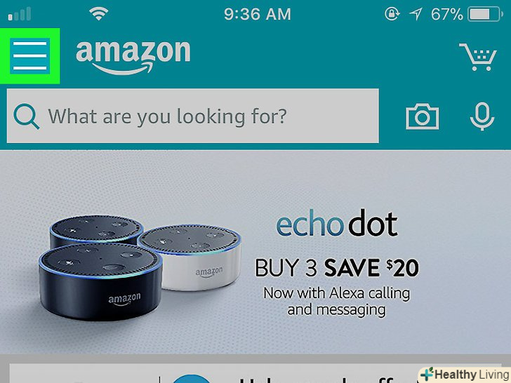 Запустіть програму Amazon на пристрої iOS. Натисніть на значок у вигляді синього кошика для покупок під логотипом Amazon. [3]