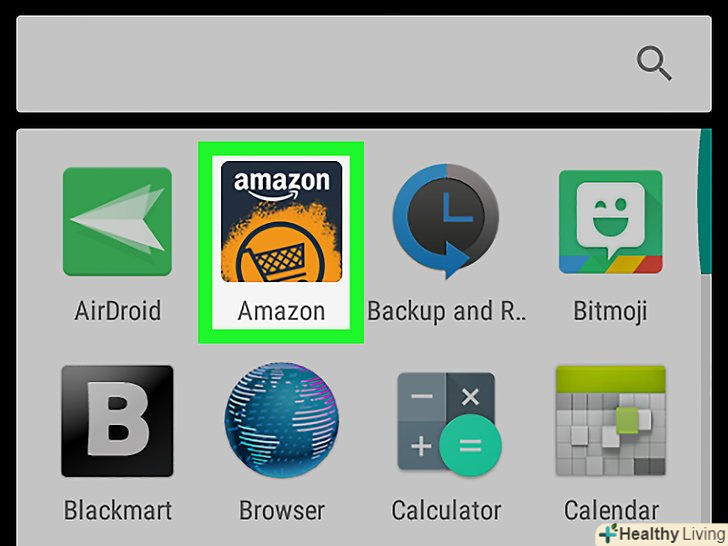 Запустіть програму Amazon на пристрої Android. Натисніть на значок у вигляді темно-синього кошика для покупок на помаранчевому тлі. [7]