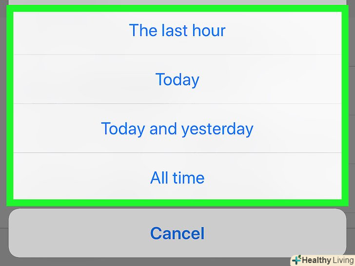 Натисніть «Очистити» у нижньому правому куті екрана. вкажіть, дані за який період слід видалити:- Остання година;