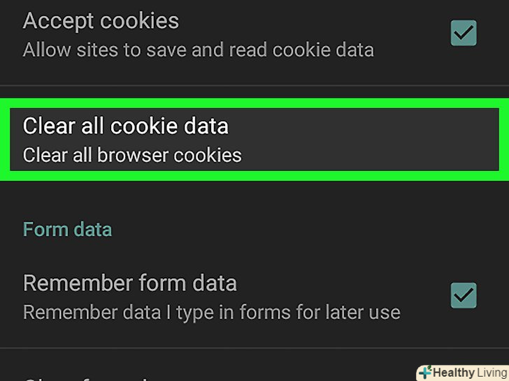 Натисніть «Очистити все» в нижній частині меню «Налаштування», в розділі «Конфіденційність». так ви видалите не тільки кеш, але і файли куки.- Або натисніть «Очистити кеш», щоб очистити кеш, але файли куки залишити недоторканими.