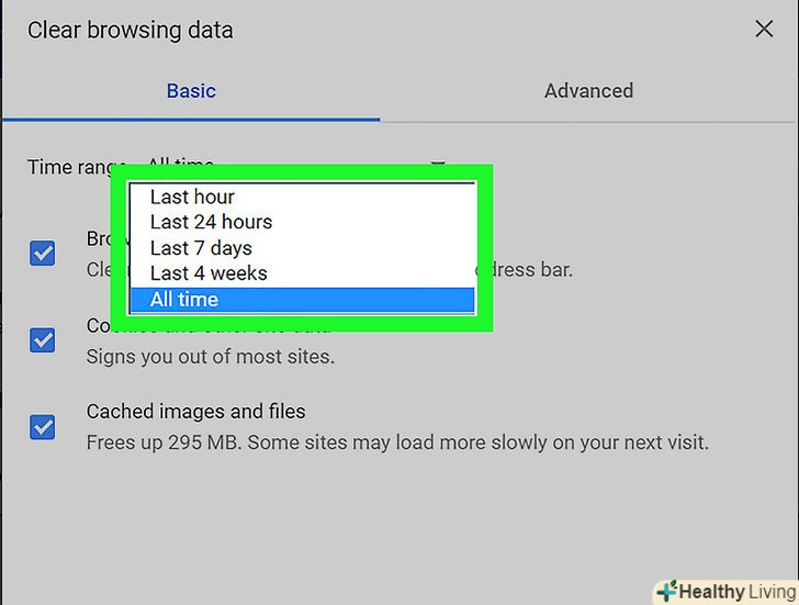 Виберіть часовий відрізок. натисніть на меню у верхній частині вікна "видалення недавньої історії", поруч з текстом " видалити:". Для досягнення найкращих результатів виберіть діапазон "Все".