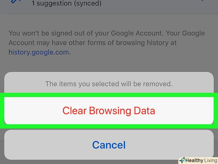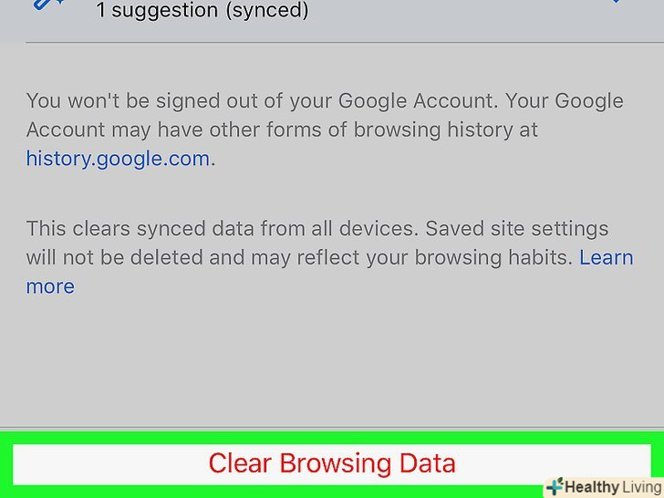 НатиснітьОчистити дані перегляду (iPhone / iPad) або Очистити дані (Android). дані перегляду будуть видалені. На iPhone / iPad ця опція знаходиться внизу меню, а на Android - в лівому нижньому кутку.