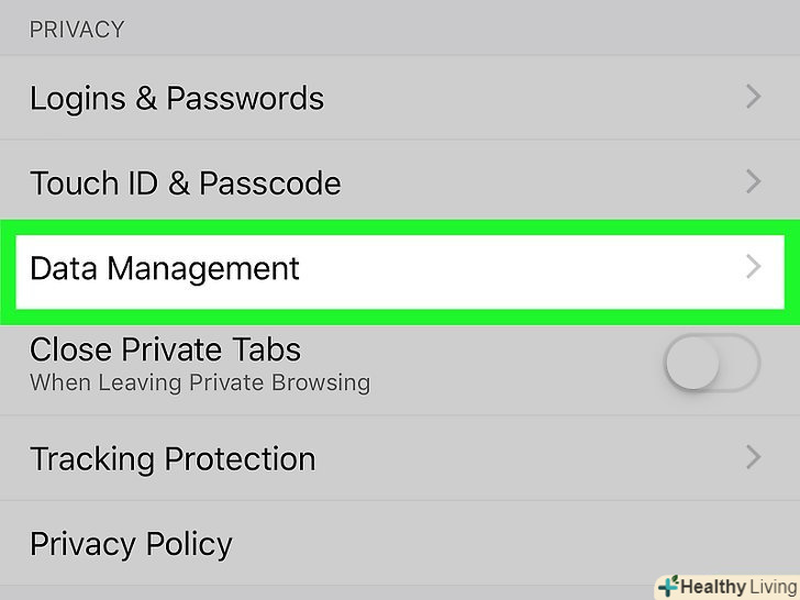 НатиснітьУправління даними (тільки на iPhone / iPad). ця опція знаходиться в розділі «Конфіденційність».