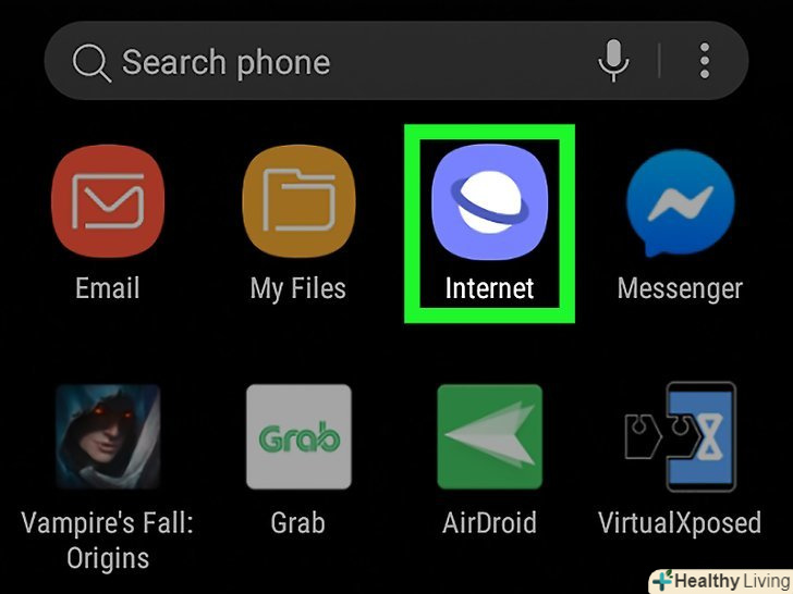 Запустіть веб-браузер Samsung. його значок виглядає як біле коло на фіолетовому тлі. Це стандартний веб-браузер на пристроях Samsung Galaxy.
