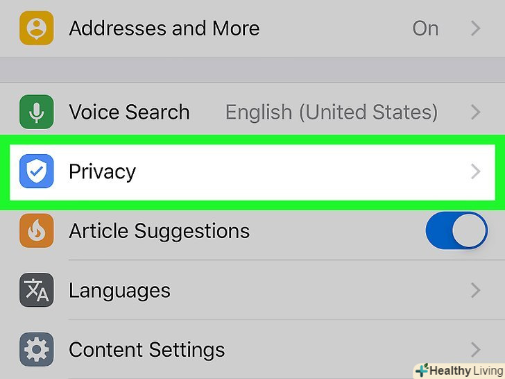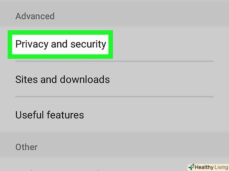 НатиснітьКонфіденційність та безпека . ця опція знаходиться в розділі «Додатково» в меню «Налаштування».