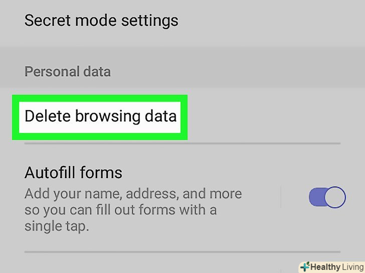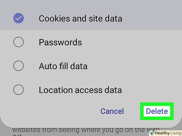 НатиснітьВидалити . ця опція знаходиться внизу спливаючого меню. Дані браузера будуть видалені.- Торкніться прапорців біля елементів, які будуть або не будуть видалені.