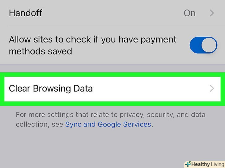 ТоркнітьсяВидалити дані перегляду . ви знайдете цю опцію під «персональні дані» в меню «конфіденційність і безпека».