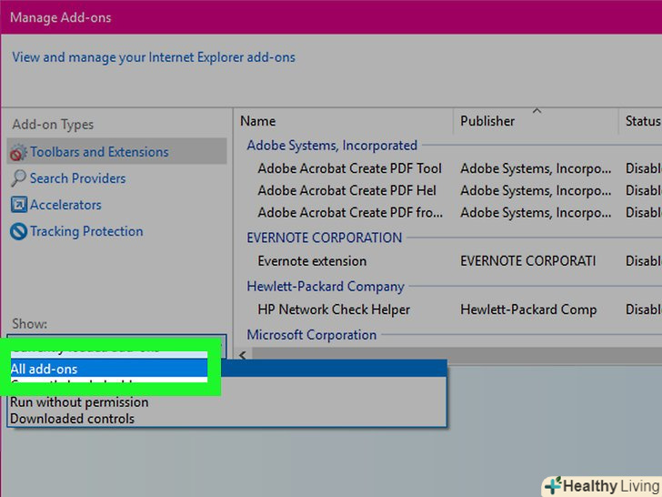 У випадаючому меню «відображати» на лівій панелі виберіть «всі надбудови».