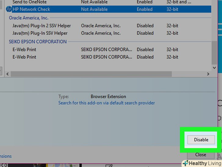 Закрийте вікно "Перегляд і управління надбудовами". у подальшій роботі в IE, панель інструментів, яку ви відключили, буде прихованою. [4]