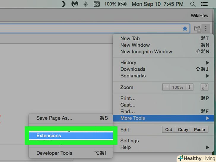 Наведіть курсор на "додаткові інструменти", потім натисніть " Розширення». у новій вкладці відкриється список всіх ваших розширень Google Chrome.