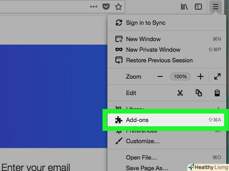Натисніть " Доповнення». у новій вкладці браузера відкриється вікно управління доповненнями.