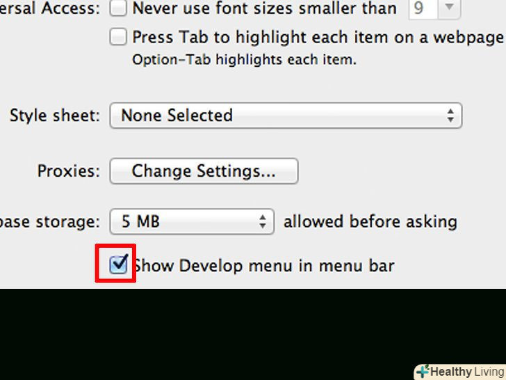 - Закрийте інструмент веб-інспектор. якщо ви хочете знову прибрати меню розробника, просто поверніться в "Налаштування"gt;"розширені" і приберіть позначку з "Показати меню розробника на панелі".