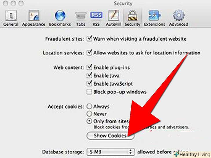 Під вкладкою "Безпека" виберіть "Показати Cookies".