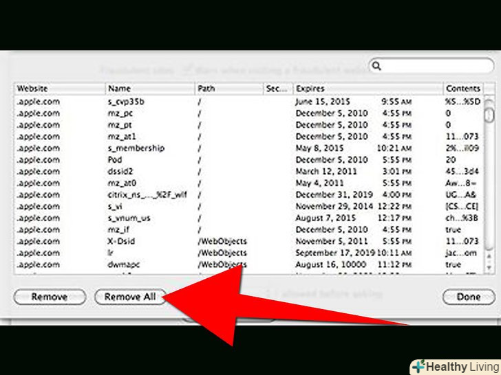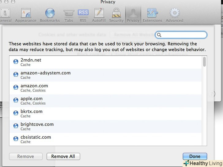 Під панеллю "Конфіденційність" виберіть "деталі". це призведе до показу різних даних. Зверніть увагу, що у версії браузера Safari 5.1 змінено відображення цього меню в більш "людське", проте менш докладний, ніж в попередніх версіях, що означає У вас більше немає можливості видалити куки-файли тільки для певного сайту.- Якщо ви хочете мати більше можливостей при видаленні, ознайомтеся нижче з обхідним методом .