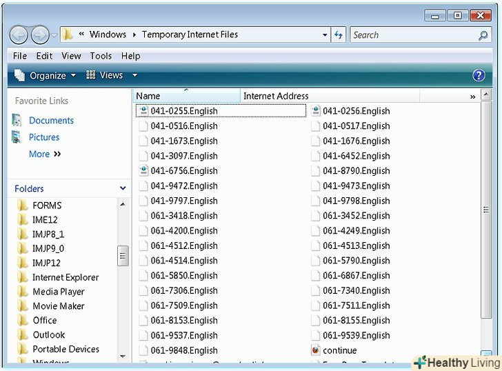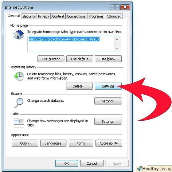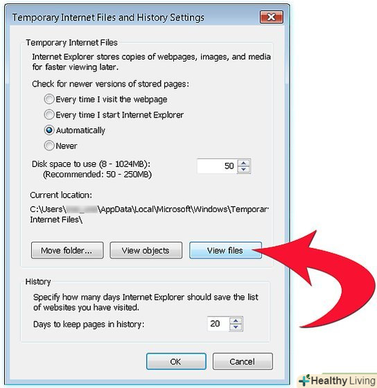 У папці тимчасових файлів Інтернету Temporary Internet Files виберіть опцію Налаштування.