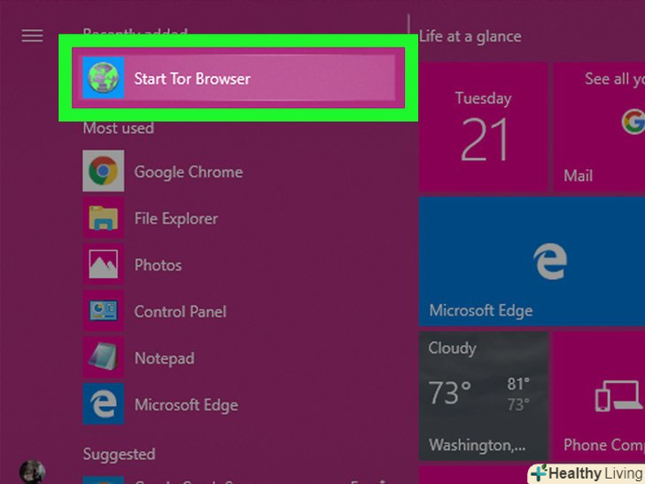 Переконайтеся, що Ви вже хоча б раз запускали Tor.це необхідно для створення файлу "torrc", в якому міститься інформація про вихідний вузол Tor.- Щоб запустити Tor, двічі клацніть по його значку, а потім натисніть "З'єднатися".