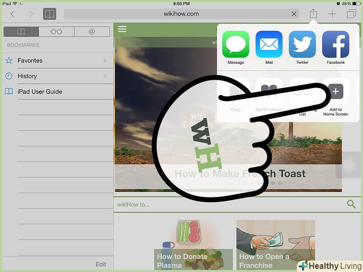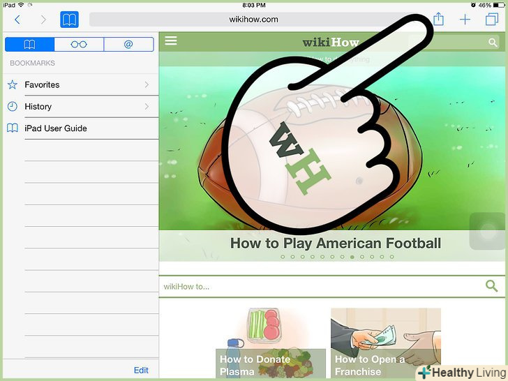Натисніть кнопку "Поділитися", коли відкриєте потрібну сторінку. це може бути будь-яка сторінка.