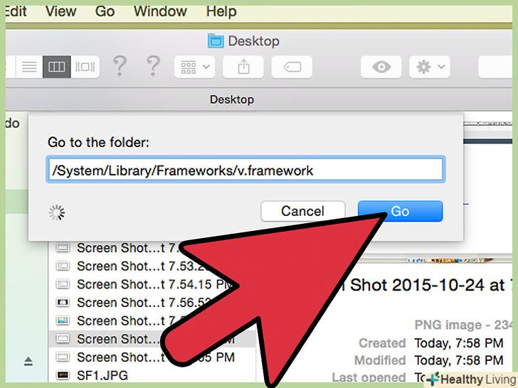 Пошукайте зазначені файли. Скопіюйте та вставте кожну з наступних записів (шляхів до файлів) в поле «Перейти до папки». Якщо файл знайдений, він відобразиться у вікні Finder і буде виділений-в цьому випадку перетягніть файл в кошик, а потім продовжите пошук файлів. Якщо файл не знайдено, просто продовжуйте пошук файлів.- /System/Library/Frameworks/v.framework