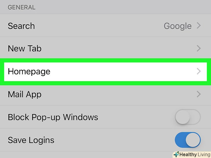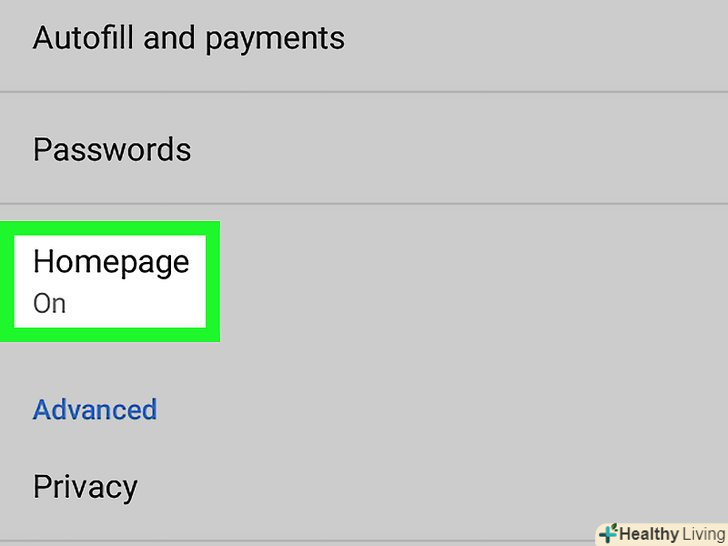 НатиснітьДомашня сторінка . ця опція знаходиться в групі параметрів «Основні».- На Android натисніть "Основні«, а потім торкніться "будинок" у верхній частині сторінки.