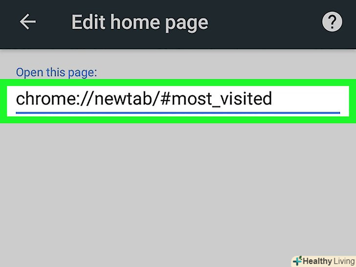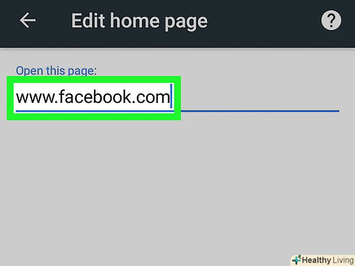 Торкніться поля «введіть адресу». воно знаходиться вгорі сторінки. Відкриється клавіатура.- На Android натисніть "Установка домашньої сторінки" gt;»інша".
