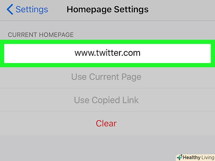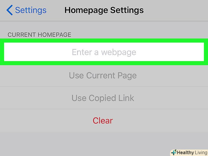 Виберіть потрібну опцію. якщо ви натиснете «Ввести URL-адресу», введіть адресу сторінки (наприклад, www.google.com) у полі «Введіть URL", а потім натисніть ↵ Enter . Зазначена сторінка стане домашньою сторінкою.