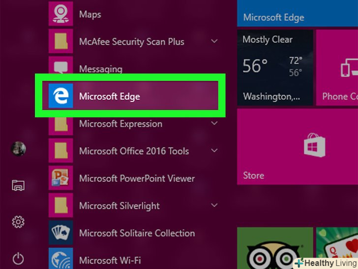 Запустіть Microsoft Edge. натисніть на значок у вигляді білої літери «е» на синьому тлі.