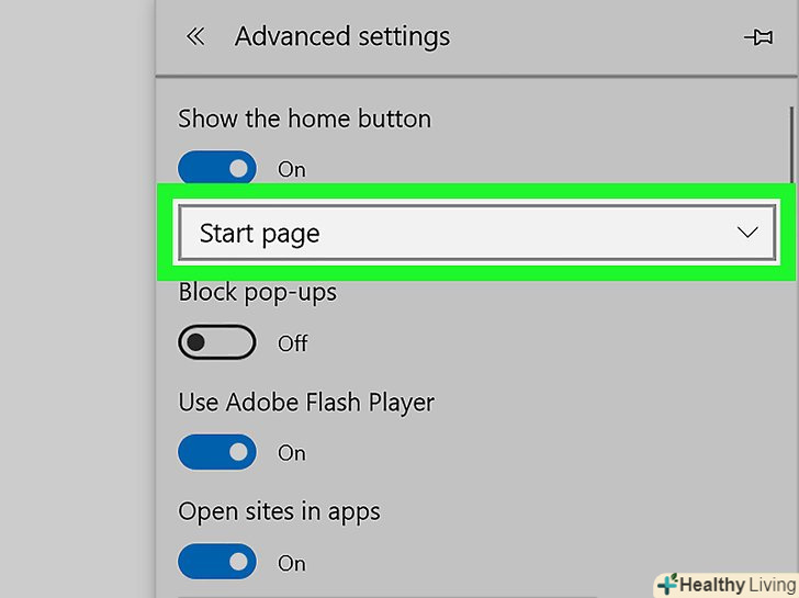 Натисніть на опцію під кнопкою «Додому». швидше за все, в ньому буде текст «стартова сторінка». Відкриється меню з наступними опціями:- «стартова сторінка " - відкриває стартову сторінку Windows, яка налаштовується в залежності від вашого місця розташування і використовуваних додатків.