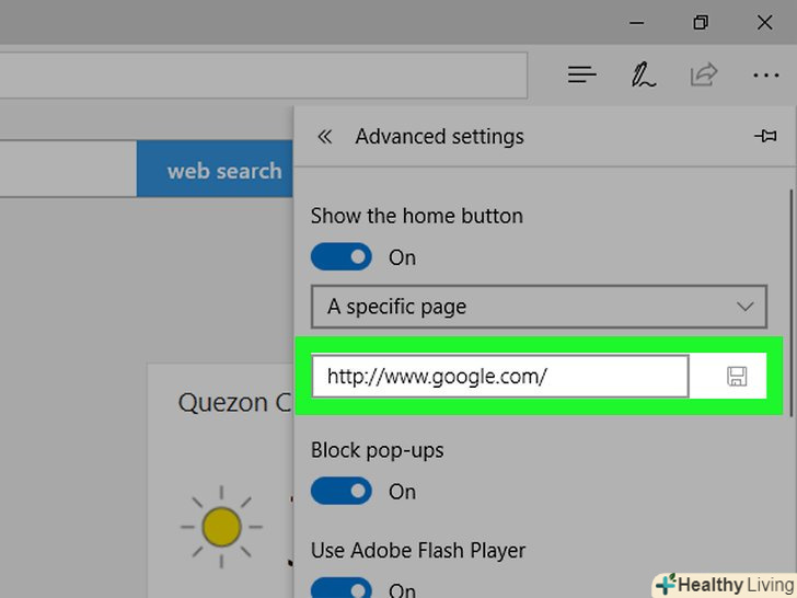 Введіть адресу веб-сайту. цей сайт стане домашньою сторінкою. Тепер натисніть ↵ Enter , щоб зберегти налаштування.- Щоб зі сторінки налаштувань перейти на домашню сторінку, натисніть на значок у вигляді будиночка в лівому верхньому кутку сторінки.