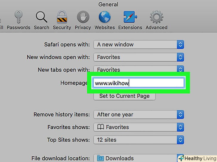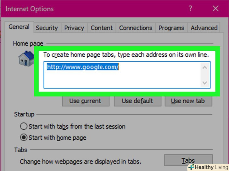 Введіть адресу сторінки в поле «Домашня сторінка». воно розташоване вгорі вікна.- Вводьте адресу у форматі www.веб-сайт.ru (замість. ru може бути. com,. net,. org і так далі).