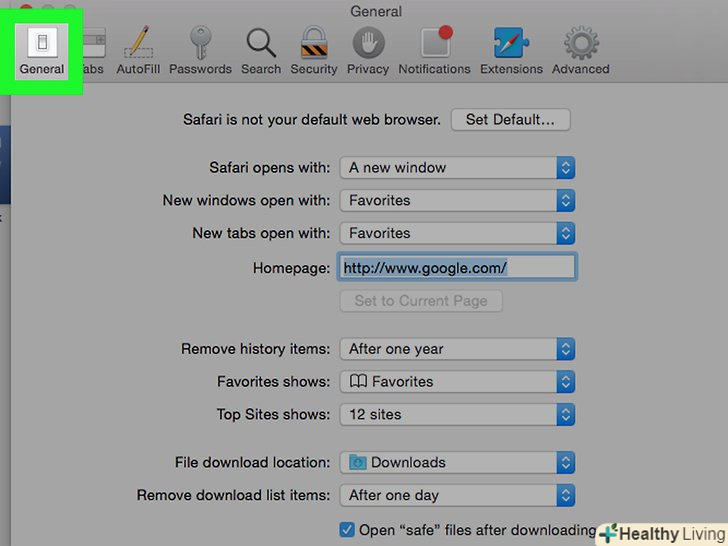 Клацніть по вкладціОсновні . вона знаходиться у верхньому лівому кутку вікна налаштувань.