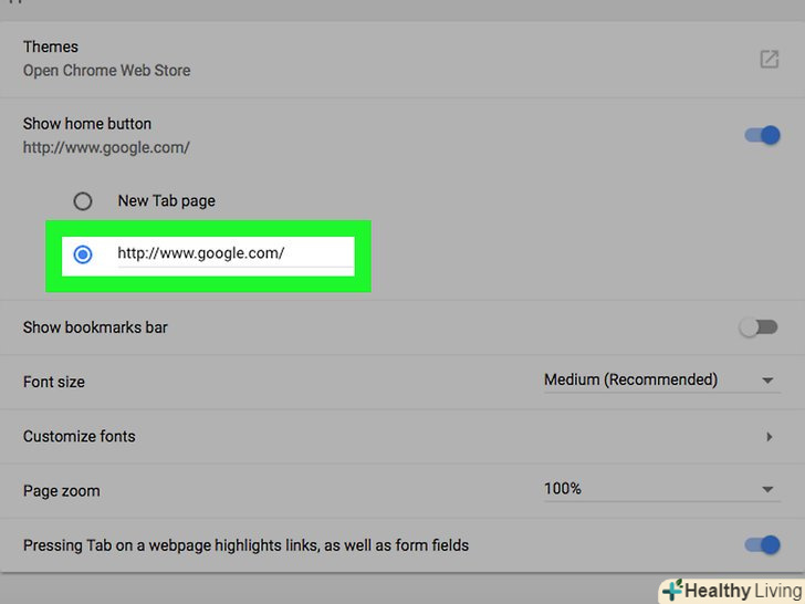 . Так ви активуєте функцію домашньої сторінки в Chrome.