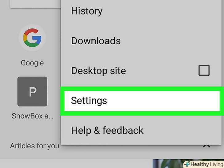 ТоркнітьсяНалаштування . ця опція знаходиться в нижній частині меню.