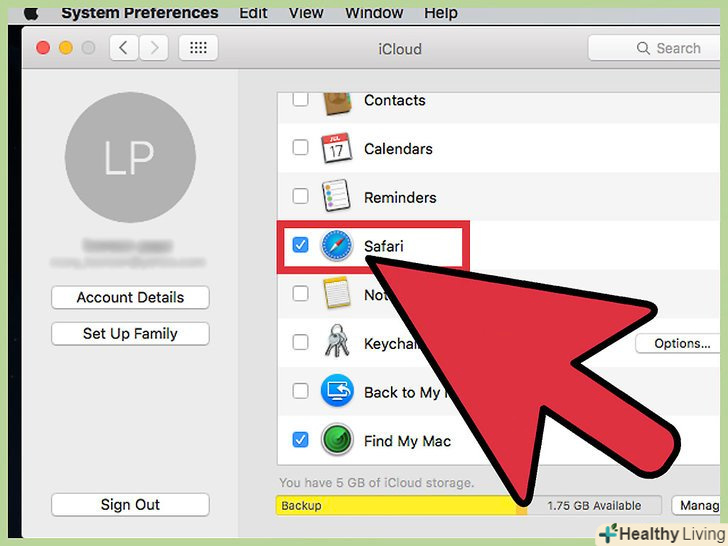 Встановіть прапорець біля «Safari» в меню iCloud. дані Safari, включаючи закладки, будуть збережені в iCloud і стануть доступні з будь-якого мобільного пристрою, пов'язаного з вашим обліковим записом iCloud.