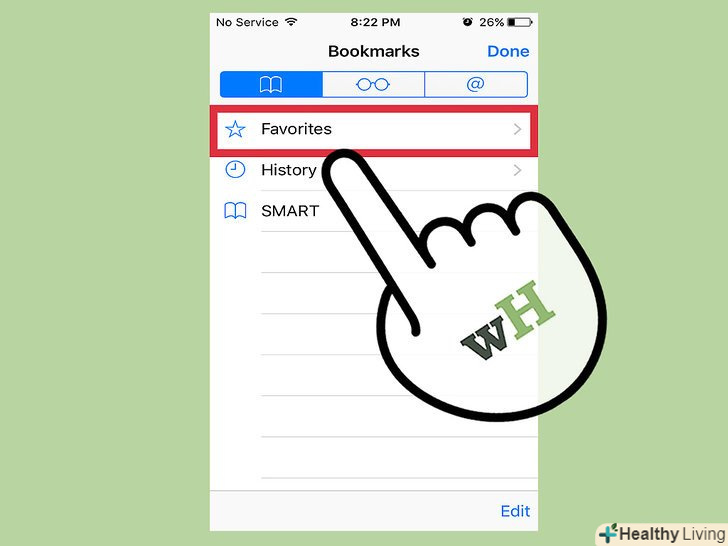 Запустіть Safari і відкрийте сторінку закладок. торкніться значка у вигляді книги на панелі інструментів у нижній частині екрана.