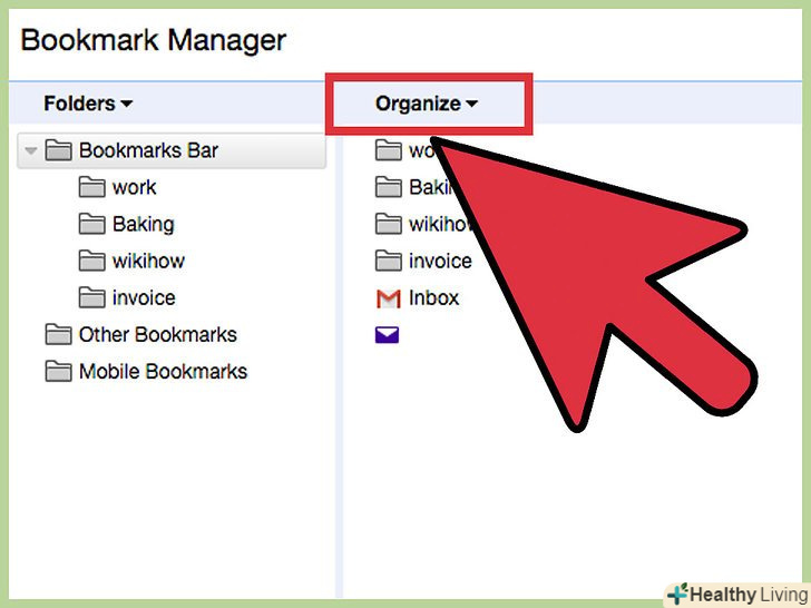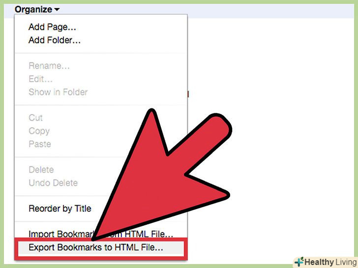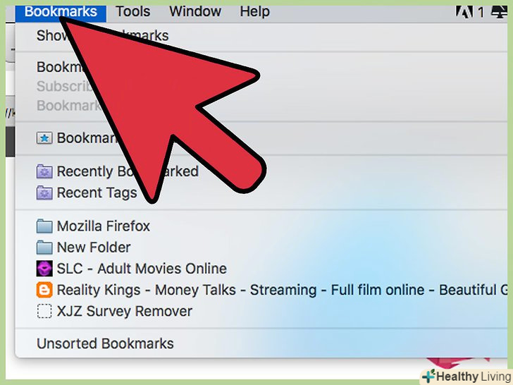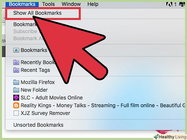 Натисніть "Показати всі закладки«, щоб відкрити вікно»бібліотека". у ньому відобразяться всі ваші закладки, а також параметри імпорту та експорту. [3]