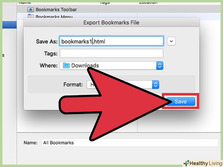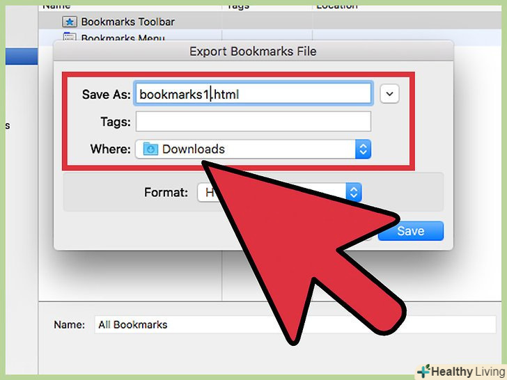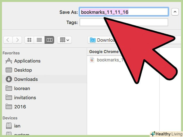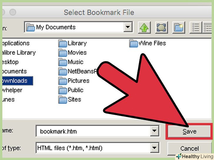 Підтвердьте місце розташування файлу. тепер файл готовий до імпорту в Safari.- Якщо ви переносите закладки з одного комп'ютера на інший, скопіюйте файл закладок на флеш-накопичувач або завантажте його в хмарне сховище (наприклад, iCloud або Google Диск), а потім перенесіть файл на інший комп'ютер.