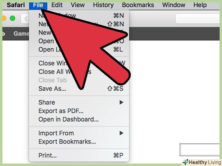 Натисніть «Файл " у верхньому лівому куті вікна Safari.