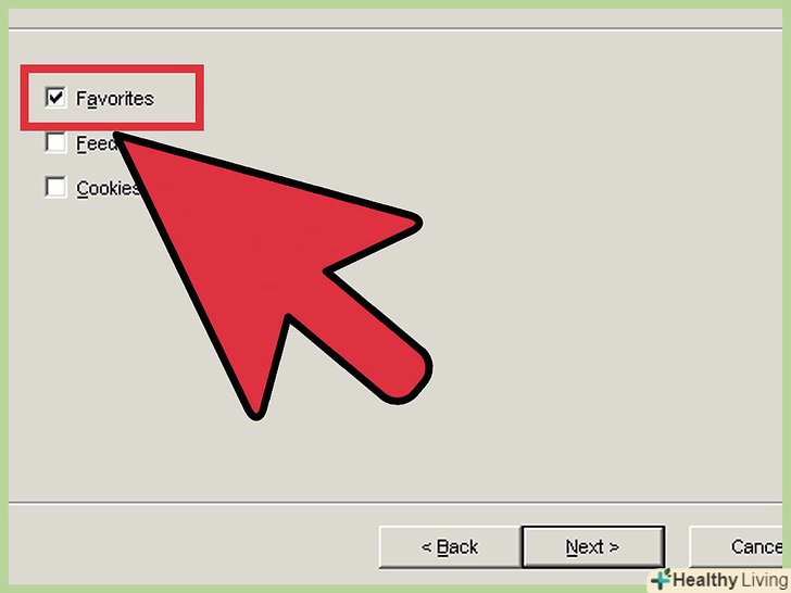 Виберіть файли, які хочете експортувати, а потім натисніть «Далі».- Якщо ви хочете експортувати всю папку «Вибране», включаючи підпапки, натисніть «Вибране» у верхній частині списку.