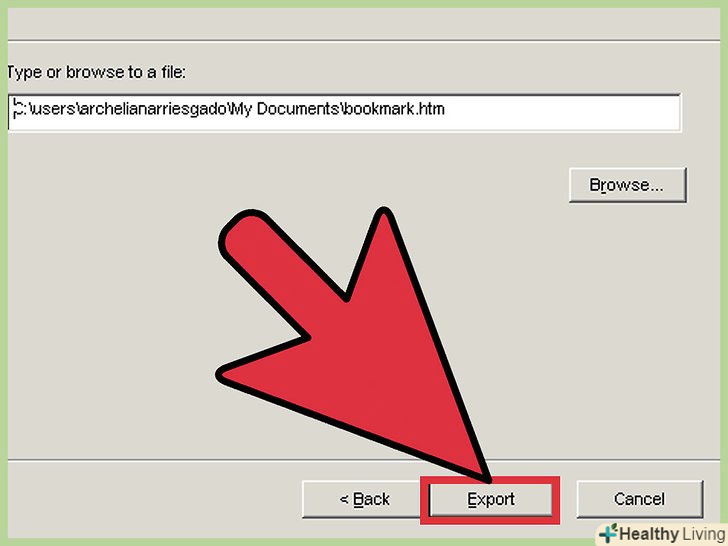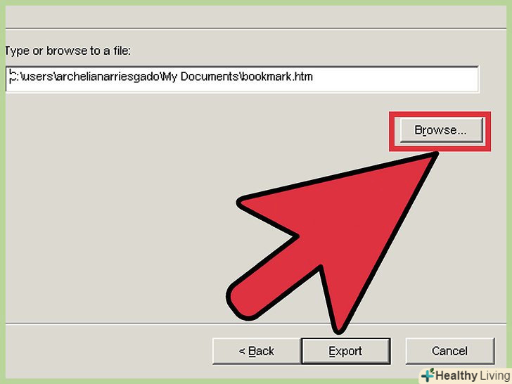 Натисніть "Огляд", щоб вибрати папку для збереження файлу закладок. збережіть файл у папці, яку легко знайти, наприклад на робочому столі.