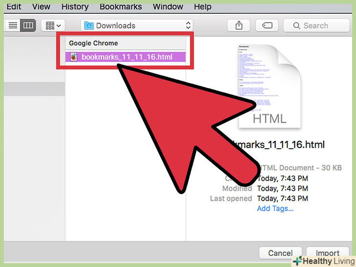 Знайдіть і виберіть файл закладок. для цього перейдіть в папку, в якій він зберігається (наприклад, на робочому столі).