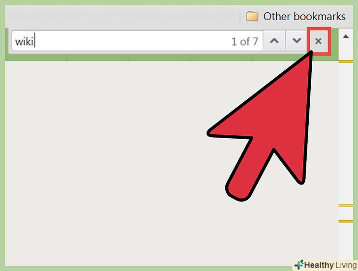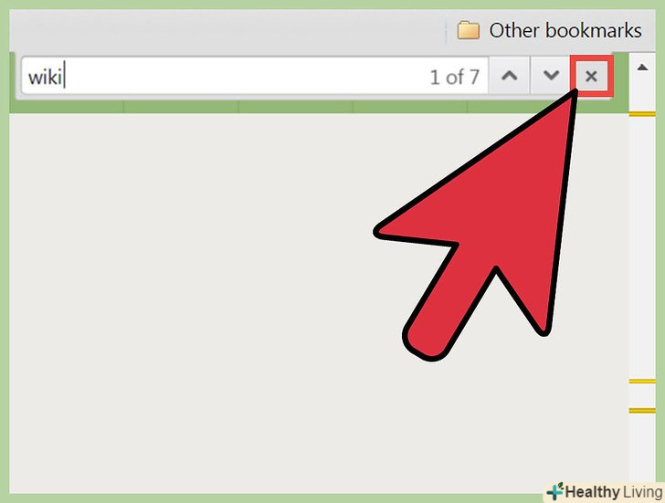Закрийте інструмент пошуку, натиснувши "X" або кнопку Escape (Esc). коли ви закінчили пошук, можете закрити інструмент одним з цих способів. Після закриття підсвічування результатів пошуку також зникне.