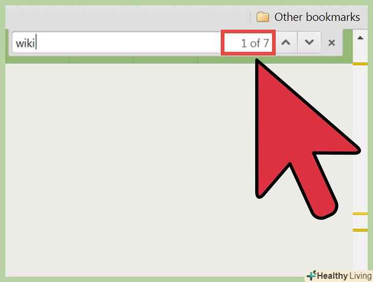 Перегляньте, скільки разів шукане слово або фраза зустрічаються на сторінці. після введення фрази Chrome виділить всі знайдені на сторінці фрази, відповідні запиту. Наприклад, з правого боку вікна пошуку буде напис" 1 з 20", яка говорить про те, скільки збігів знайдено .- За допомогою стрілок вгору і вниз ви можете переміщатися між результатами пошуку.