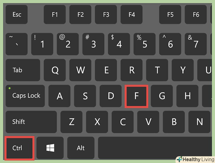 Використовуйте клавіатуру для активації інструменту пошуку. залежно від того, що ви використовуєте – ПК (комп'ютер під керуванням Windows) або Mac – вам потрібно натискати різні клавіші: [4]- На ПК вам потрібно натиснутиCtrl + F .